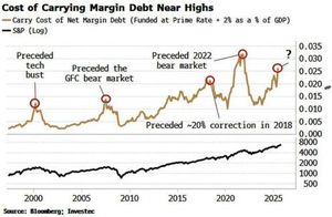 Rising margin debt paired with slowing disposable income and higher borrowing costs is inflating market risk and makes any downturn more likely to be sharp and forced.