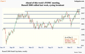 Ahead of this week’s FOMC meeting, the major equity indices last week all rallied toward their October highs, even as short-term indicators got further pushed into overbought territory.