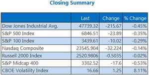 The Dow Jones shed around 200 points on Monday, falling away from 48,000.